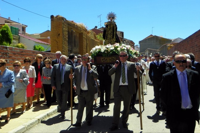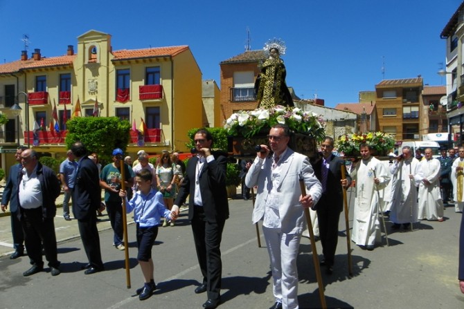 Tras una misa concelebrada, en la que participaron buena parte de los sacerdotes de la comarca, la imagen del patrón de Sahagún y su reliquia, salieron en procesión recorriendo las principales calles de la localidad, vestida de fiesta.
