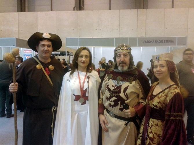 La Feria Internacional de Turismo, Fitur, que se desarrolla hasta el domingo en la capital del país, ha recibido esta mañana la visita de Alfonso VI y su esposa Constanza, protagonistas de la puesta en escena con la que el Ayuntamiento de Sahagún pretende llamar la atención del público que estos días se está dejando caer por el evento turístico.