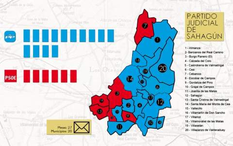El PP gobernaría en minoría o bien aliado a cualquiera de las tres formaciones que también consiguieron representación este 26M: Unión del Pueblo Leonés, Ciudadanos y Unidos por Sahagún, todos ellos con un edil electo.